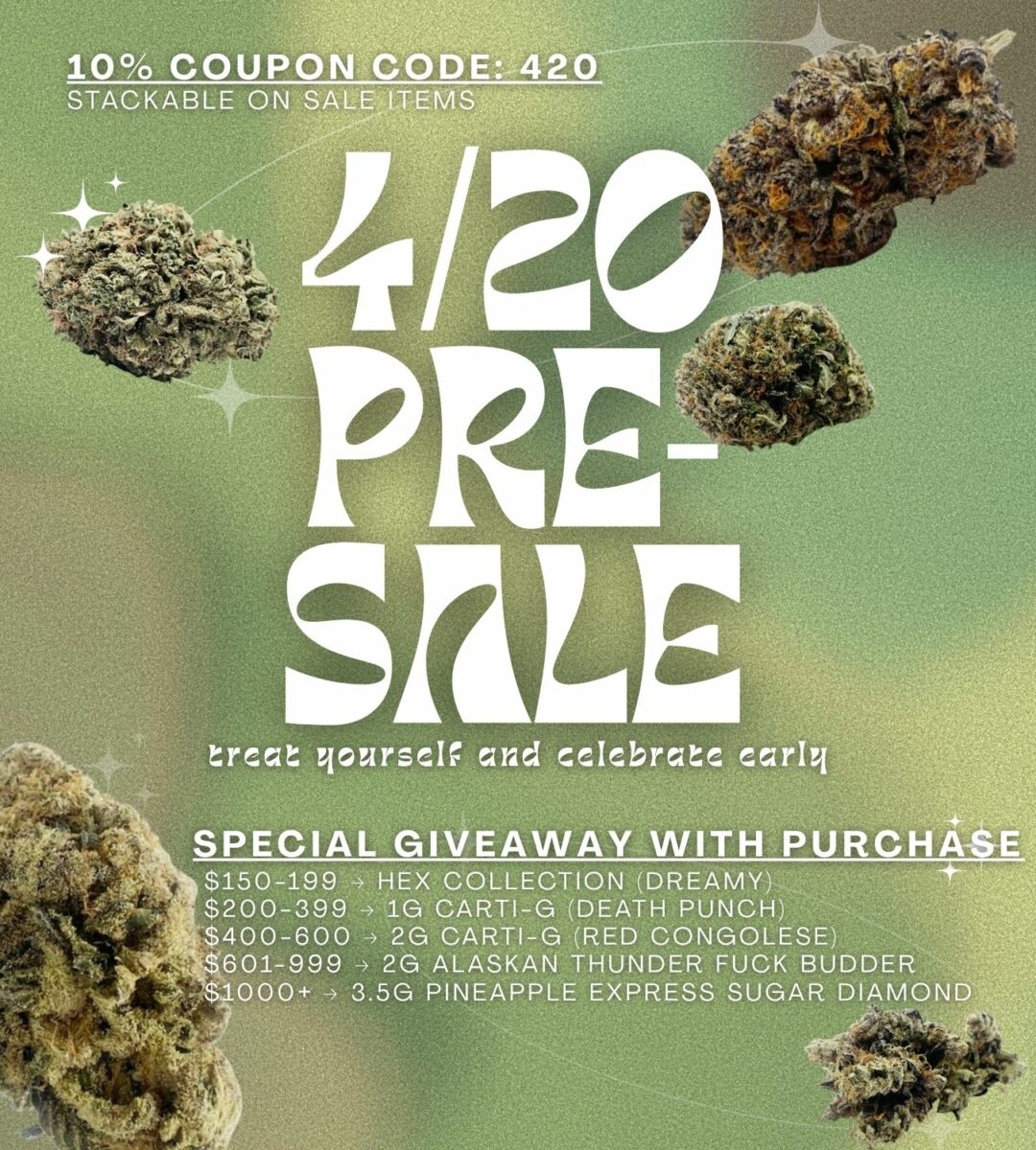 – Daily deals on select strains and products –
