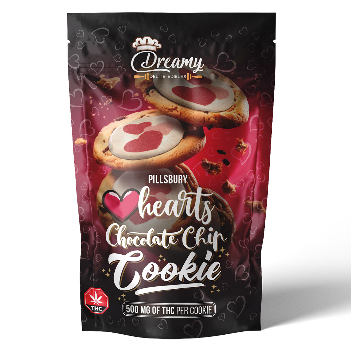 Dreamy Delite – Canna Cookies TikTok Viral Valentines Cookies that are perfect for Valentine’s Day or every day. Fun pink and red hearts in every soft bites. Made with love in mind. Each delicious Pill’s soft, chewy and delicious sugar cookies on top of Chocolaty Chocolate Chip Cookies. Perfect for Valentines day gifts for that special someone in your life. These heart shaped cookies will fill your family nights, holiday parties or every day, with memorable dreamy experiences.